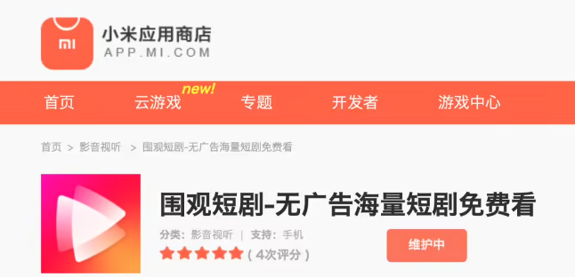 Tech 星球发现,小米推出免费短剧 App“围观短剧”,正式入局短剧赛道。