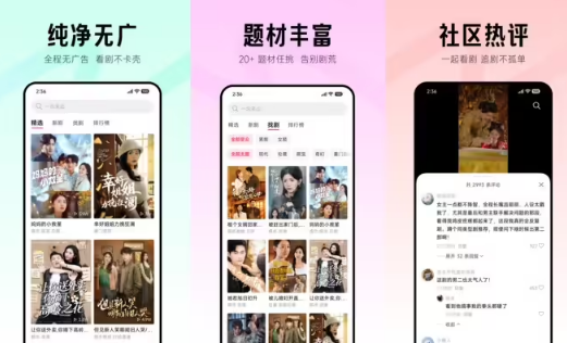 应用介绍显示,其内容涵盖都市、逆袭、言情、复仇、总裁、家庭伦理等 20 + 题材,支持快捷手势切换,全程无广告,还提供榜单和评论区供用户互动交流。