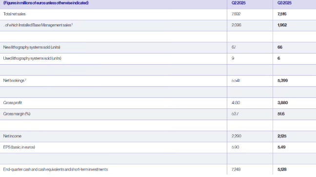 光刻机巨头 ASML 今日发布了 2025 年第三季度报告: