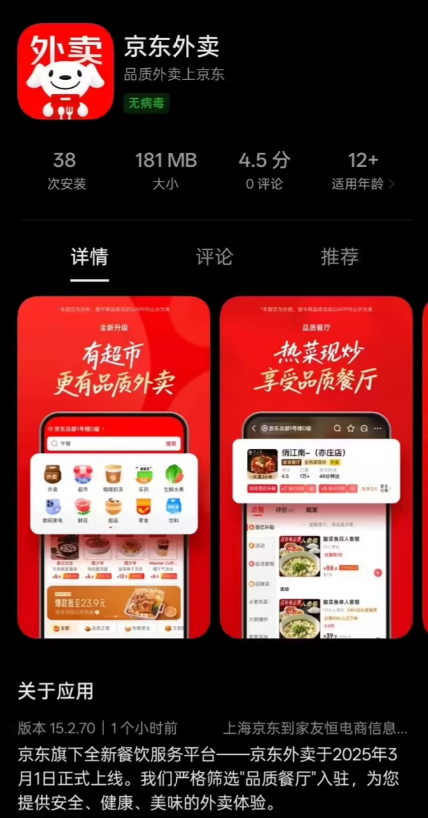 京东外卖服务目前与此前的电商购物服务共用京东 App,用户需要在 App 首页顶栏的“秒送(外卖)”栏目中浏览下单。