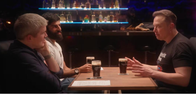 在视频中,马斯克与全球在线支付服务商Stripe联合创始人约翰·科利森(John Collison)以及YouTube播客主德沃克什·帕特尔(Dwarkesh Pate)进行了深度交谈,共持续2小时49分钟。