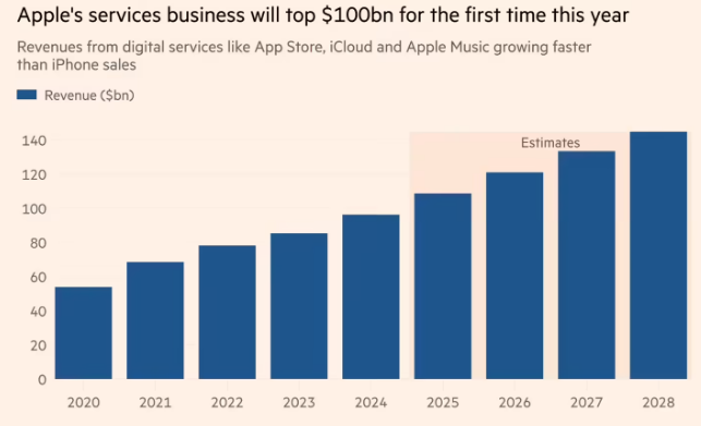 据《金融时报》报道,尽管 App Store 面临越来越大的法律和监管压力,但苹果公司 2025 财年的服务业务收入有望首次突破 1000 亿美元。